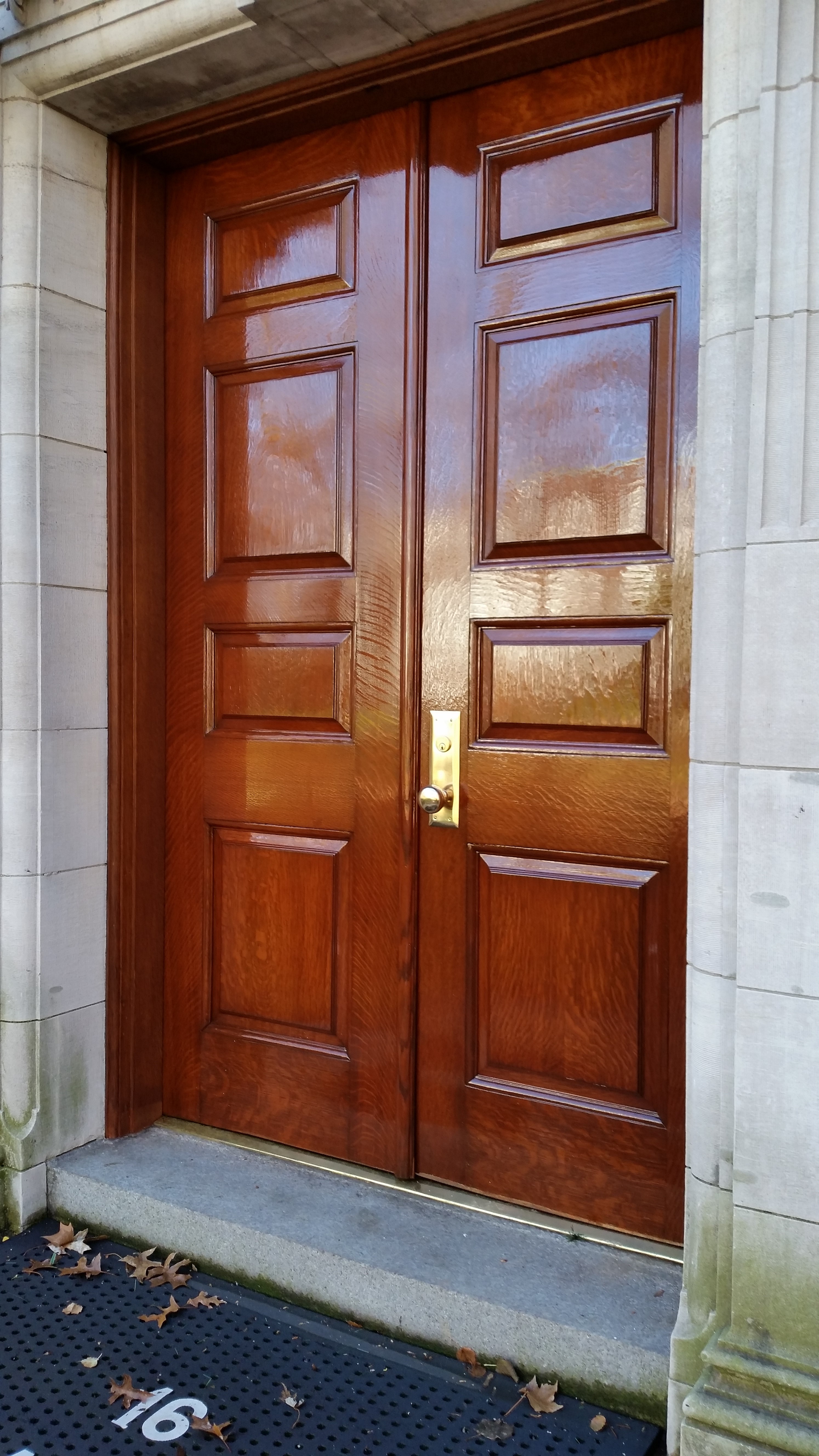 These doors in the central west end were faded and weathered, they needed extensive repairs to all areas. Now they’re back up and coated in marine grade varnish for a long lasting finish.